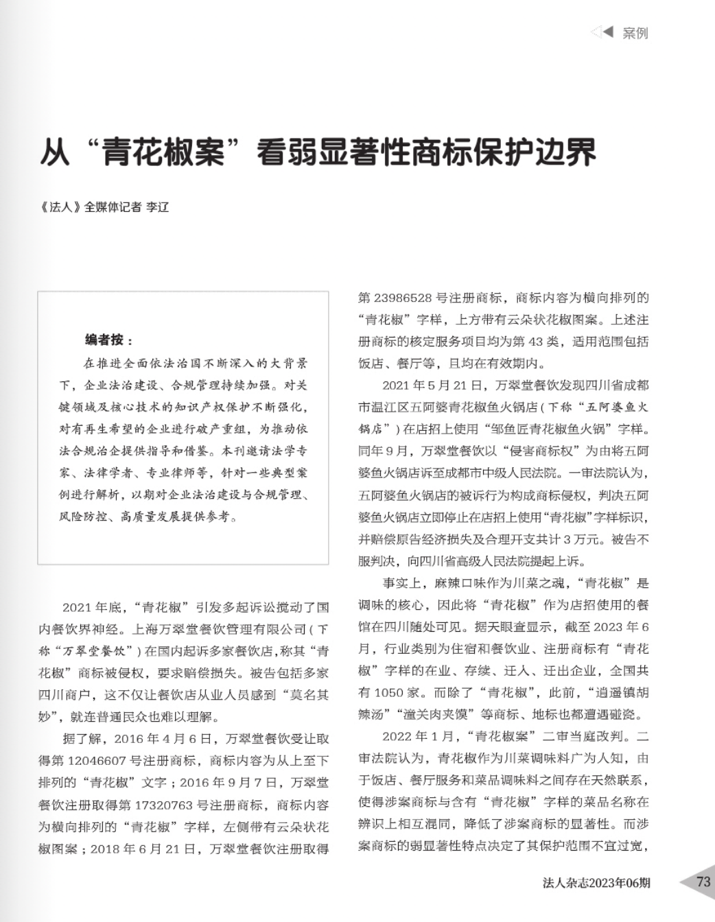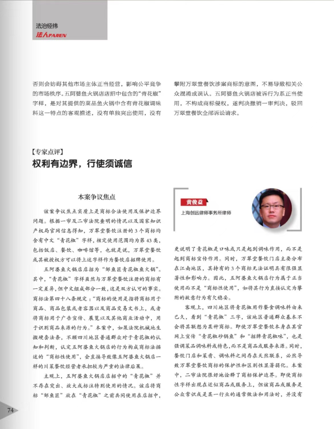 乌海辉知简讯 | 辉知队黄俊益律师应“法治日报”旗下杂志邀请,就“青花椒”案发表专家点评