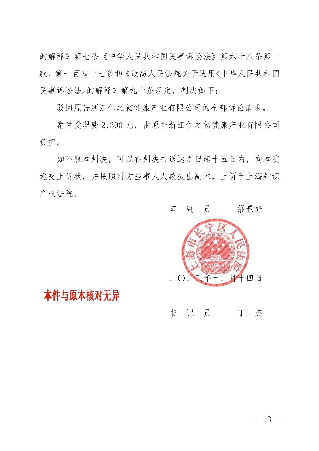 乌海辉知胜诉佳讯 | “仁之初健康”著作权及不正当竞争纠纷案,法院:驳回全部诉讼请求!